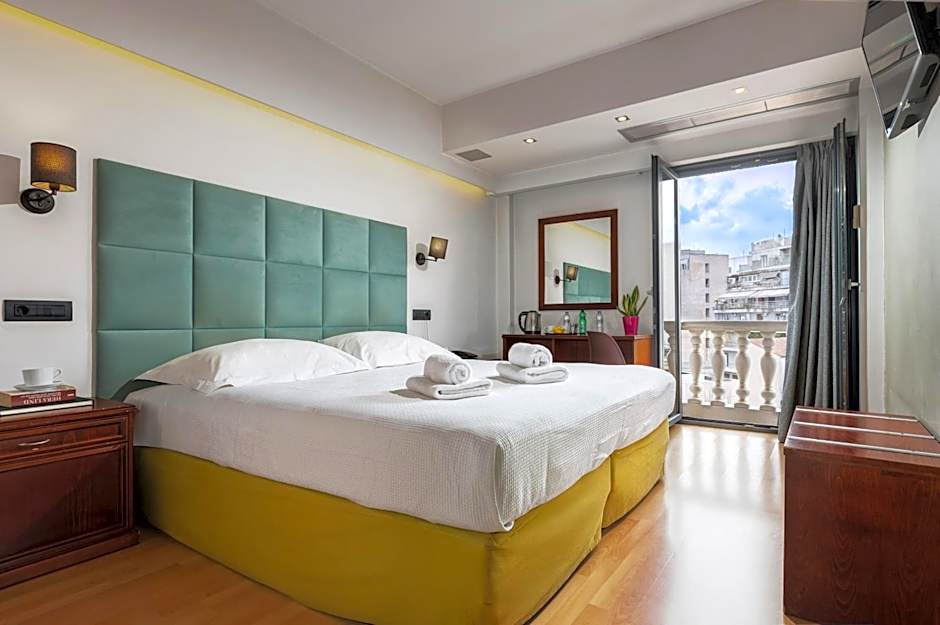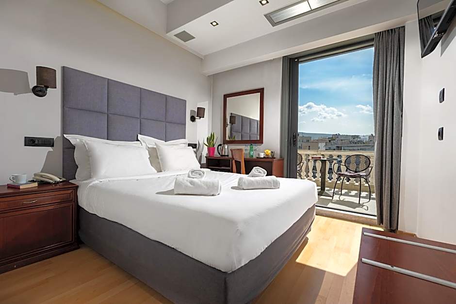 Located on the upper floor, this room opens out onto a balcony and offers views of the Acropolis and Lycabettus Hill. Classically decorated and fitted with wooden flooring, it includes a flat-screen LCD TV and mini fridge.